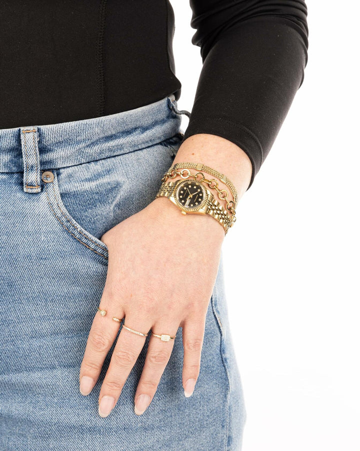 - Gold-tone and black adjustable link bracelet; fold over clasp