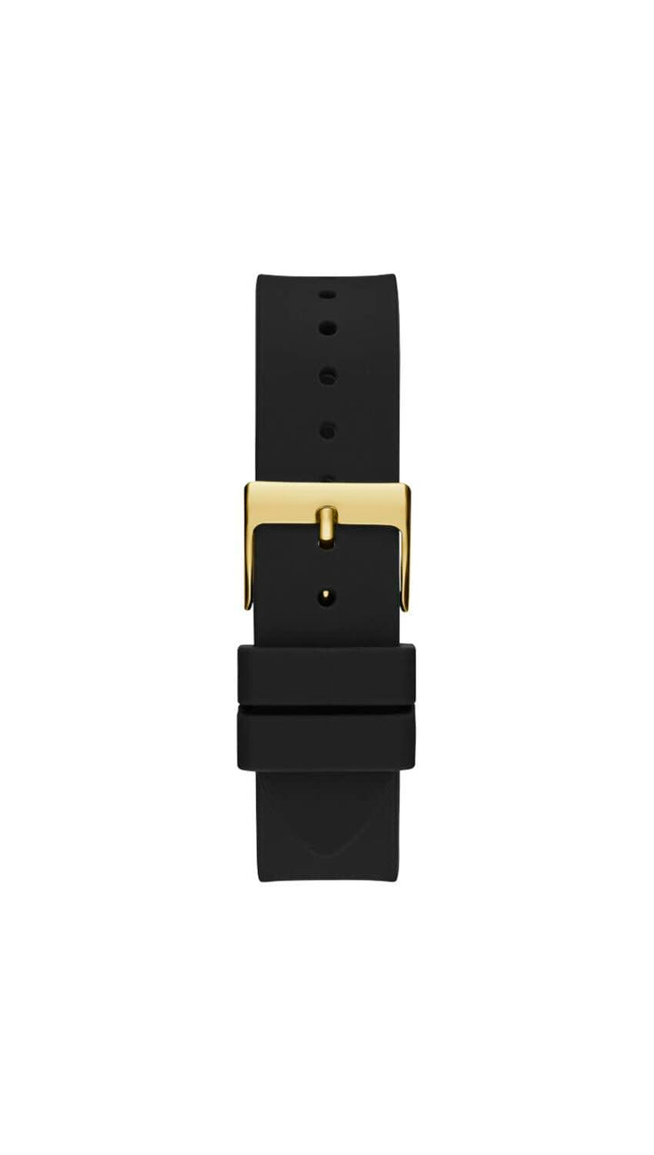 GUESS Ladies 40mm Watch - Black Strap Champagne Dial Gold Tone Case