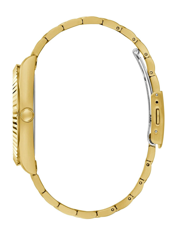 GUESS Mens Dress Multifunction 42mm Watch – Gold-Tone Stainless Steel Case with Black Dial & Bracelet